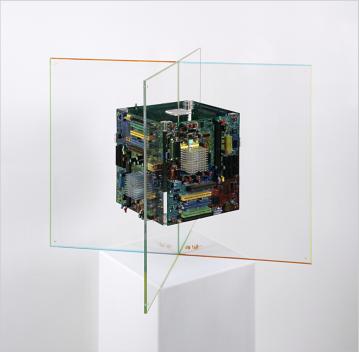 Das Acrylglas-Objekt kann auf einem Podest stehen